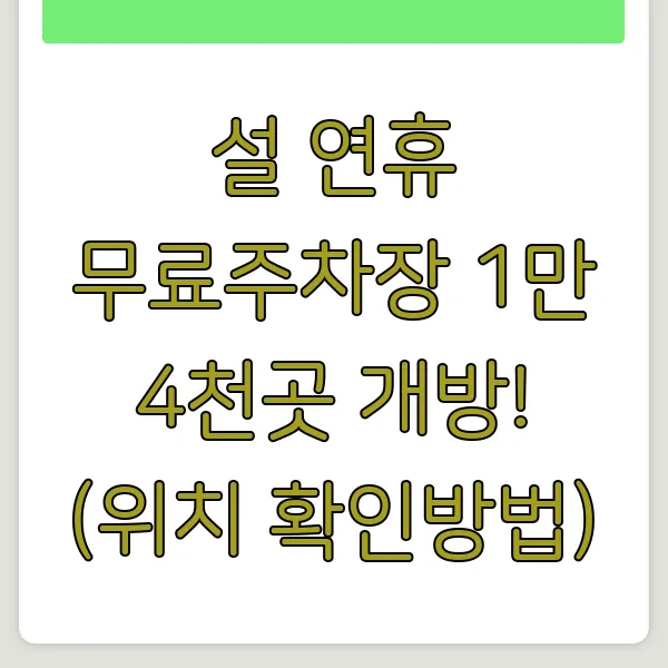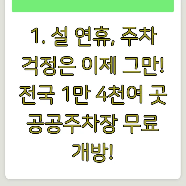 2025년 설 연휴, 드디어 가족들을 만나러 가는 길! 하지만 교통체증과 주차 걱정은 스트레스죠? 😥 그런 걱정 싹 날려버릴 희소식! 전국 1만 4천여 곳의 공공기관 주차장이 무료로 개방됩니다! 명절 주차, 공공주차장, 무료주차, 주차장 위치, 설 연휴 주차 등 핵심 키워드를 통해 주차 걱정 없이 마음 편히 고향길에 오르세요!🚗💨